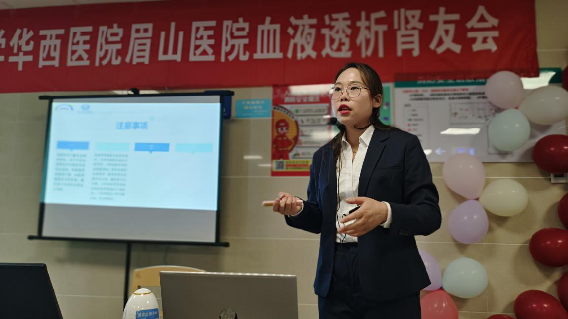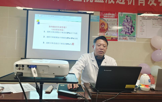 在会上,血透中心主任医师蒲超、主治医师赖青和主管护师王艳分别为大家带来“如何自我饮食管理”、“怎么合理透析”、“如何维护好‘透析生命线净’”等健康科普知识讲座。
