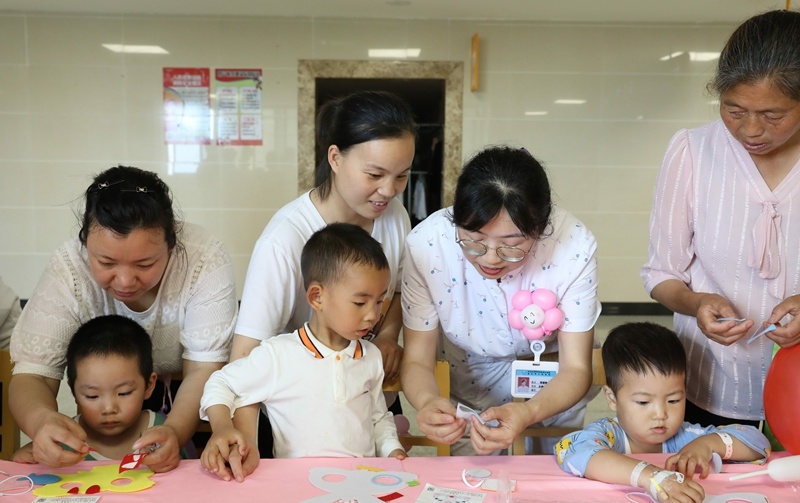 独特的住院日,独特的儿童节,家长朋友为医护人员的爱心表示感谢,也弥补了他们暂不能带孩子到户外亲子活动的遗憾。