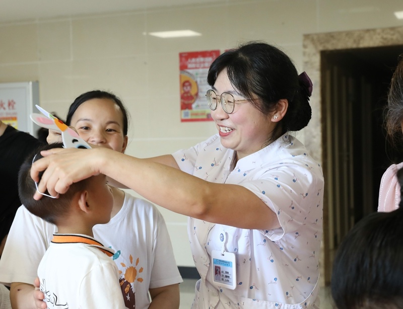 护士阿姨们带着大家一起制作手工,手把手的指导,拿着亲手完成的卡通面具,孩子们爱不释手。