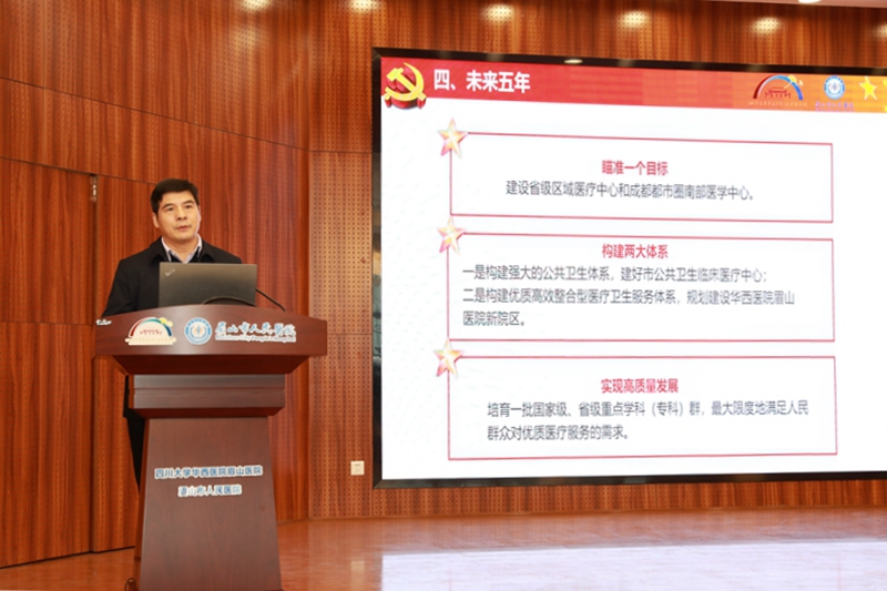 未来五年,全市卫健系统要将“一切为了眉山好”作为工作的出发点和落脚点,把以“人民为中心”的发展思想贯穿一切工作,按照市第五次党代会报告描绘的宏伟蓝图,“瞄准一个目标”,建设省级区域医疗中心和成都都市圈南部医学中心。